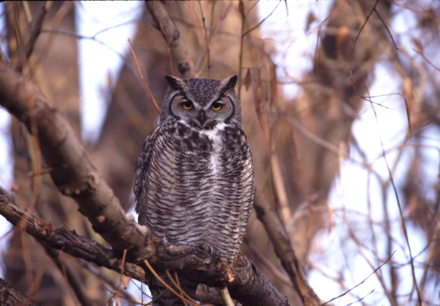21. OUR YARD WEST OF BURLEY Great Horned Owl (Idaho) Photographed from our upstairs bedroom window. We go to sleep and awaken to their soft hooting. (August)